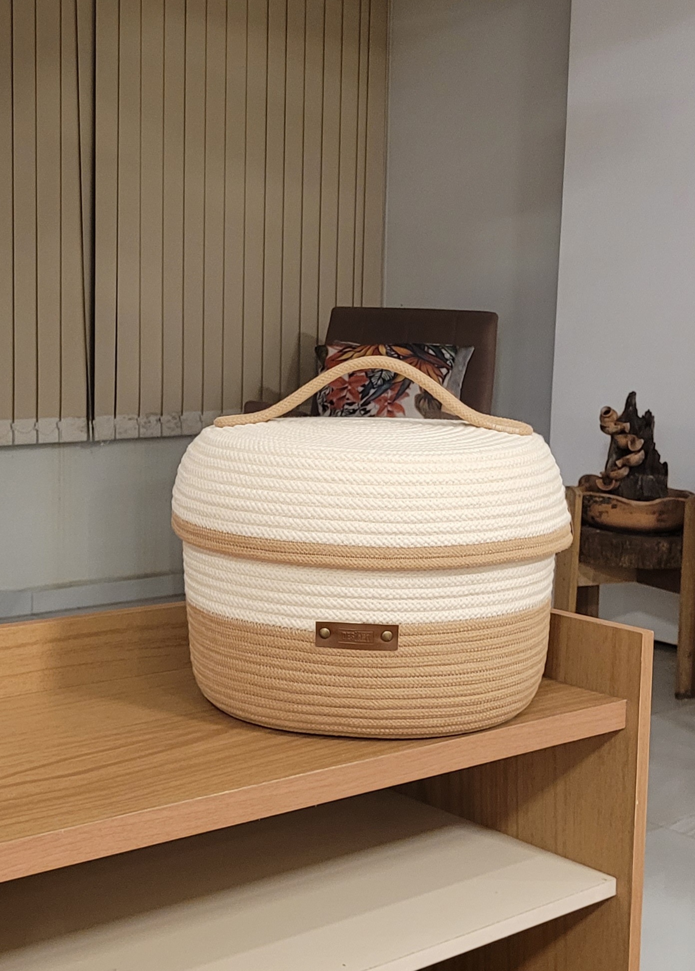 Organize com estilo! Descubra a elegância e funcionalidade do nosso Cesto Redondo de Corda de Algodão com tampa! Feito com cordas cru e torrone, este cesto é robusto, porém leve, perfeito para o seu dia a dia. Costurado com fio de 100% poliéster, possui detalhes em sintético caramelo e rebites ouro velho, garantindo durabilidade e charme. Adicione um toque de sofisticação à sua casa enquanto mantém tudo no lugar. Aproveite agora!