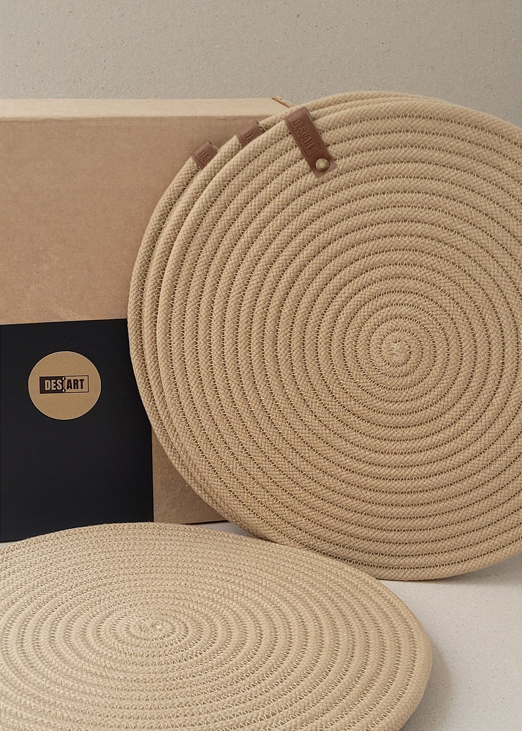 01 unidade se refere à 01 jogo americano com 6 peças de cordão de algodão.