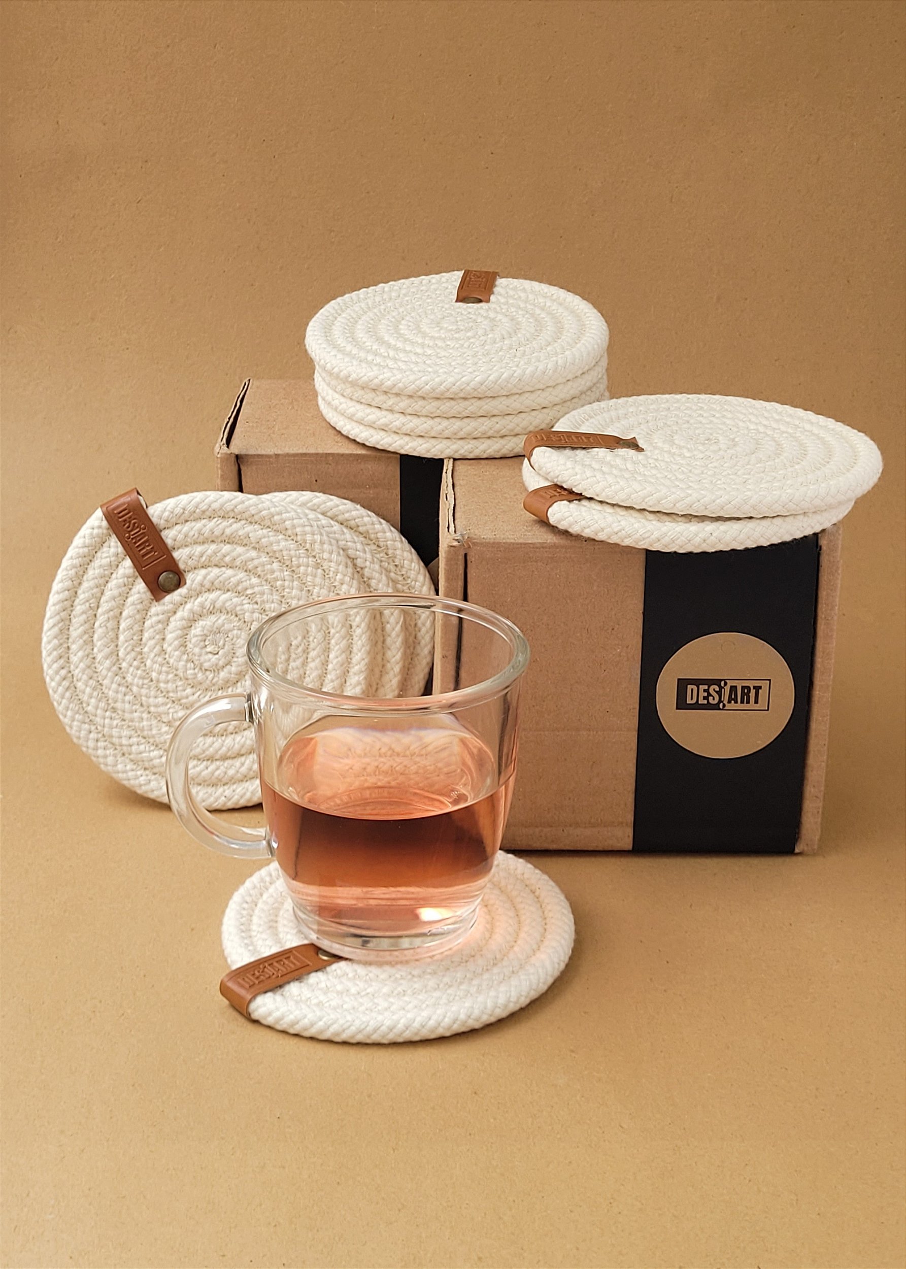 01 unidade se refere à 01 jogo com 6 porta copos de cordão de algodão.